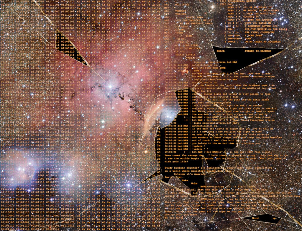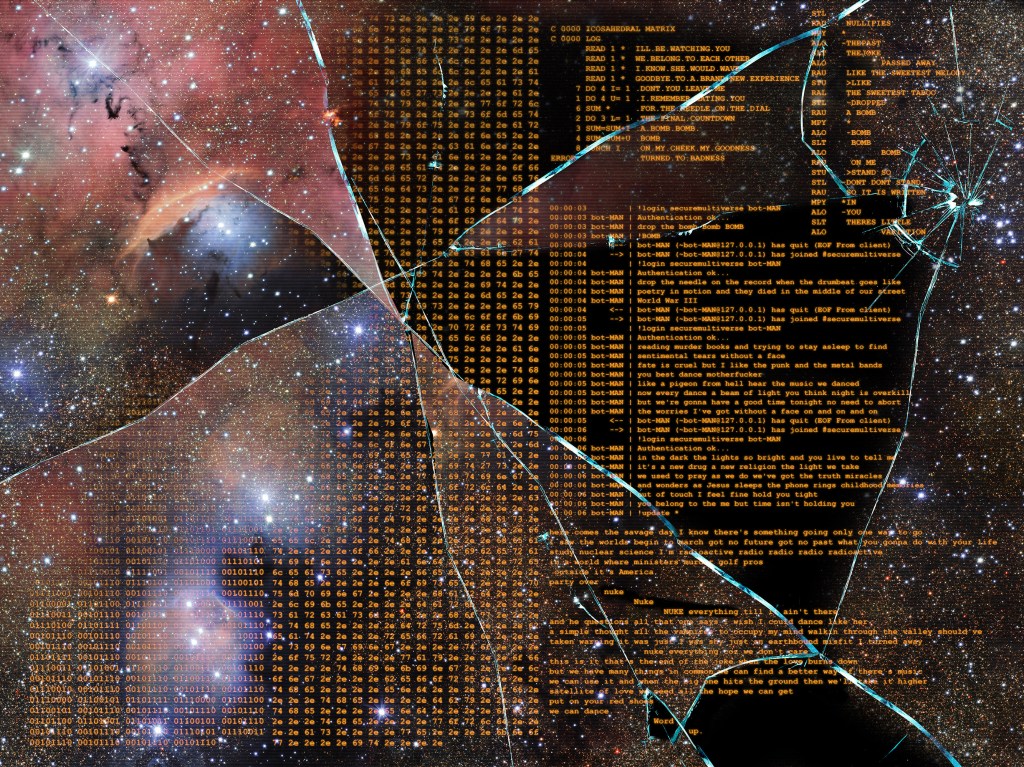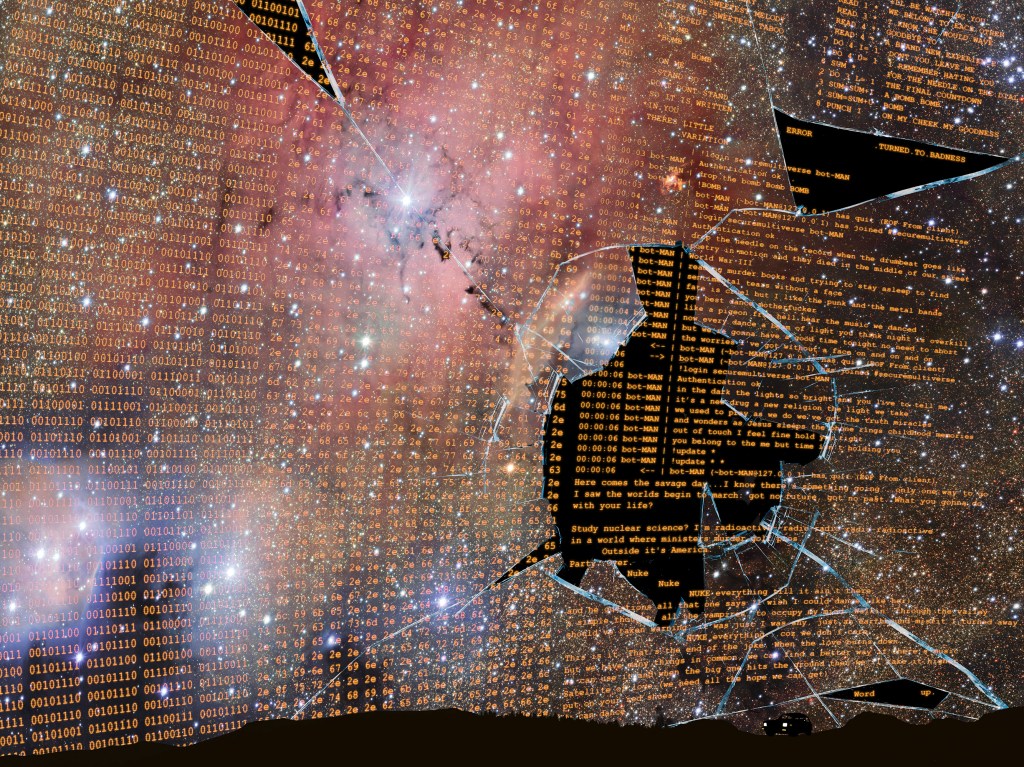 This is a two-page spread in my forthcoming absurdist romance, The Two-Headed Lady at the End of the World (forthcoming Montag 2022). It is Sweet Valley High meets Dr. Strangelove.